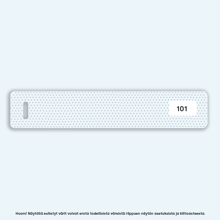 50 mm kaihtimissa väreinä mattavalkoinen (001) hopea (003) ja kiiltävä valkoinen (011).