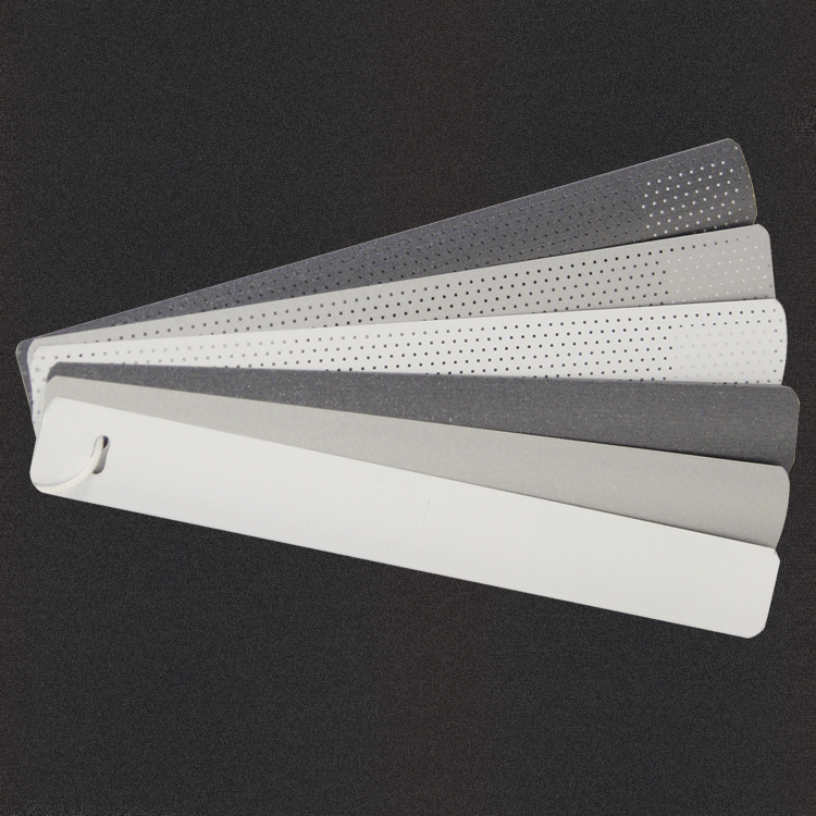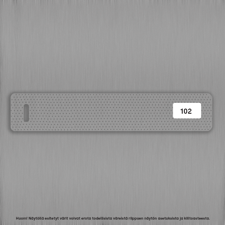 16 mm kaihtimissa väreinä mattavalkoinen (001), hopea (003), grafiitti (085) ja reikäsäleet mattavalkoinen (101), hopea (102 ja grafiitti (185).